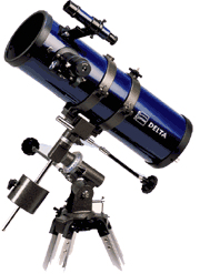 Kompaktes kurz gebautes Teleskop in gutem Preis-Leistungsver- hältnis und hoher Brenn- weite. Auch als Reisegerät geeignet. Mit einer EQ 1-Äquatorial-Montierung, Ausgleichgewicht und flexiblen Nach-führwellen. Stabiles, höhenverstellbares Alu-stativ, Sucherfernrohr, 2 große 11/4 Zoll - Okulare, inkl. Barlow-linse 2x und Mondfilter, Vergrö-ßerung 50 bis 332 x. Ausbau-fähig mit weiteren 11/4 Zoll Okularen, Umkehrlinse, Foto-adapter, Nachführmotor.