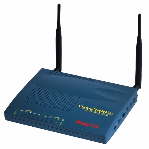 Draytek Vigor 2600VGi-A. Aufwärts gerichtete Datenrate: 1 Mbit/s, Abwärts gerichtete Datenrate: 8 Mbit/s. Switch Protokoll: Ethernet, Data Link Protokolle: Ethernet, Management-Protokolle: Telnet, HTTP / HTTPS, SNMP. Firewall: Access Control, IP-based Packet Filtering, Stateful Packet Inspection, Denial of Service Prevention, VPN Unterstützung: IKE Key Management IPSec, PPTP, L2TP, L2TP over IPSec Hardware-based DES / 3DES Encryption AES. Stromverbrauch (typisch): 10 W. Schnittstelle: LAN, WAN, WLAN, ISDN, Printer, Max. Datenübertragungsrate: 0,1 Gbit/s, Abmessungen (BxTxH): 160 x 220 x 36,7 mm