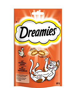 Willst du deine Katze mit etwas verwöhnen von dem sie schon immer geträumt hat? Jetzt gibt es Dreamies™-Snacks, die köstliche Belohnung für zwischendurch. Die cremige Füllung in der knusprigen Hülle ist genau das Richtige für alle Naschkatzen. Die praktische, wiederverschließbare Verpackung hält die Snacks frisch, so dass du deinen Liebling jeden Tag aufs Neue verwöhnen kannst. Auch deine Katze wird bald verrückt sein nach den traumhaften Snacks! Dreamies™ gibt es in mehreren köstlichen Geschmacksrichtungen und auch als Mega Pack mit extra viel Inhalt.