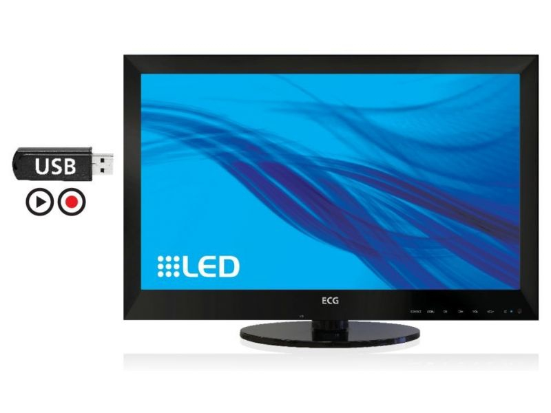 ECG 24 LED 302 PVR. Bildschirmdiagonale: 61 cm (24 Zoll), HD-Typ: Full HD, Bildschirmauflösung: 1920 x 1080 Pixel. Analoges Signalformatsystem: NTSC, Digitales Signalformatsystem: DVB-T. RMS-Leistung: 12 W. Unterstützte Videoformate: AVI,MPEG1,MPEG2, Unterstützte Audioformate: MP3, Unterstützte Bildformate: BMP,JPEG XR,JPG. Produktfarbe: Schwarz