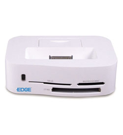 Edge Dock & Multi Flash Card Reader for iPod® & iPhone®. Produktfarbe: Weiß. Gewicht: 241 g. Abmessungen (BxTxH): 100 x 60 x 31 mm, Kompatible Betriebssysteme: Windows 2000 SP4, XP Mac OS 10.2.8 +