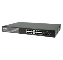 Edimax 16 + 4 SFP Module Slots Gigabit Web Smart Switch. Switch-Typ: Managed network switch. Max. Datenübertragungsrate: 1 Gbit/s. Produktfarbe: Schwarz, Zertifizierung: FCC Class A, CE. Datenpaket-Pufferspeicher: 0,4 MB. Gewicht: 4,2 kg