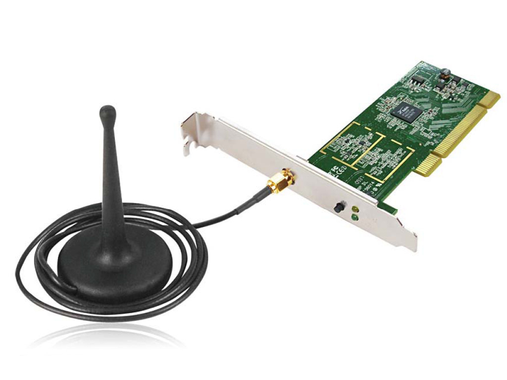 Edimax EW-7711In. Übertragungstechnik: Kabellos, Hostschnittstelle: PCI, Schnittstelle: WLAN. Datenübertragungsrate (Maximum): 150 Mbit/s. Netzstandard: IEEE 802.11b,IEEE 802.11g,IEEE 802.11n, Frequenzband: 2.4000 - 2.4835. Datenübertragungsgeschwindigkeit WLAN: 1,2,6,9,11,12,24,36,48,54,72,150 Mbit/s. Verstärkung dBi (bei Antennenkabel): 3 dBi