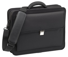 NOTEBOOK Case High Capacity Executive 15,4" (39 cm) – 16,4" (41,7 cm). Strapazierfähige und hochwertige Notebooktasche im attraktiven Design. Passend für 15,4" (39 cm) bis 16,4" (41,7 cm) Notebooks. Sicherheits-Klettband zur Fixierung des Notebooks. Mit separatem Dokumentenfach, individuellen Unterteilungen, nützlichen Zubehörtaschen und Ablagefächer für Unterlagen, CD/DVDs und Schreibutensilien. Hoher Tragekomfort durch geringes Eigengewicht sowie komfortablem, verstellbarem und abnehmbarem Schultertragegurt. Notebook-Fach: B 400 x H 300 x T 50 mm