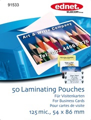 50 Laminating Pouches 125 Mic. (54 x 86mm) Hochwertige Laminierfolien für Visitenkarten etc. Format 54x86mm, 125 micron, 50 Stück pro Verpackung.