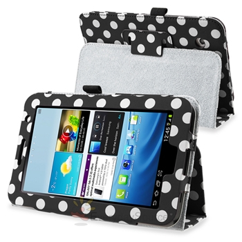 eForCity Leather Case with Stand for 7-Inch Samsung Galaxy Tab 2, Black/White Polka Dot (PSAMGLXTLC29)