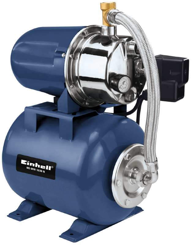 Das Hauswasserwerk BG-WW 1038 N ist ein kraftvolles und zuverlässiges Gerät, das die Förderung von Klarwasser aus Reservoirs, Brunnen und Schächten ermöglicht, um Bewässerungsanlagen, Waschgeräte, Toilettenspülungen und vieles mehr mit Brauchwasser zu versorgen. Das robuste Pumpengehäuse besteht aus korrosionsbeständigem Edelstahl. Der leistungsstarke 1.000-Watt-Motor des BG-WW 1038 N fördert bis zu 3.800 Liter Wasser pro Stunde. Die Befüllung der Pumpe erfolgt über eine Wassereinfüllschraube. Der Druckkessel bietet 20 Liter Behältervolumen, so dass die Pumpe nicht bei jeder Wasserentnahme anläuft. Erst bei Abfallen des Drucks wird die Pumpe durch den integrierten Druckschalter automatisch eingeschaltet und nach Erreichen des max. Druckes wieder deaktiviert. Mit Hilfe des eingebauten Manometers lässt sich der Druck auf einen Blick ablesen. Das Restwasser lässt sich über eine Wasserablassschraube bequem entleeren.