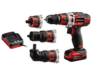Lieferumfang: Bohrfutter, Exzenteraufsatz, Ladegerät, Winkelaufsatz