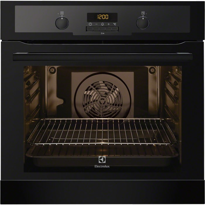 Electrolux EEC44540OK. Gesamtes Fassungsvermögen Garraum Ofen: 70 l, Insgesamt Backofen Leistung: 3480 W, Innenkapazität des 1. Backofens: 70 l. Produktfarbe: Schwarz, Kontrolltyp: Knöpfe, Rotation, Kontrollposition: Vorderseite. Energie-Effizienzklasse: A, Energieverbrauch (konventionell): 0,89 kWh, Energieverbrauch (erzwungene Konvektion): 0,79 kWh. Breite: 594 mm, Tiefe: 568 mm, Höhe: 594 mm