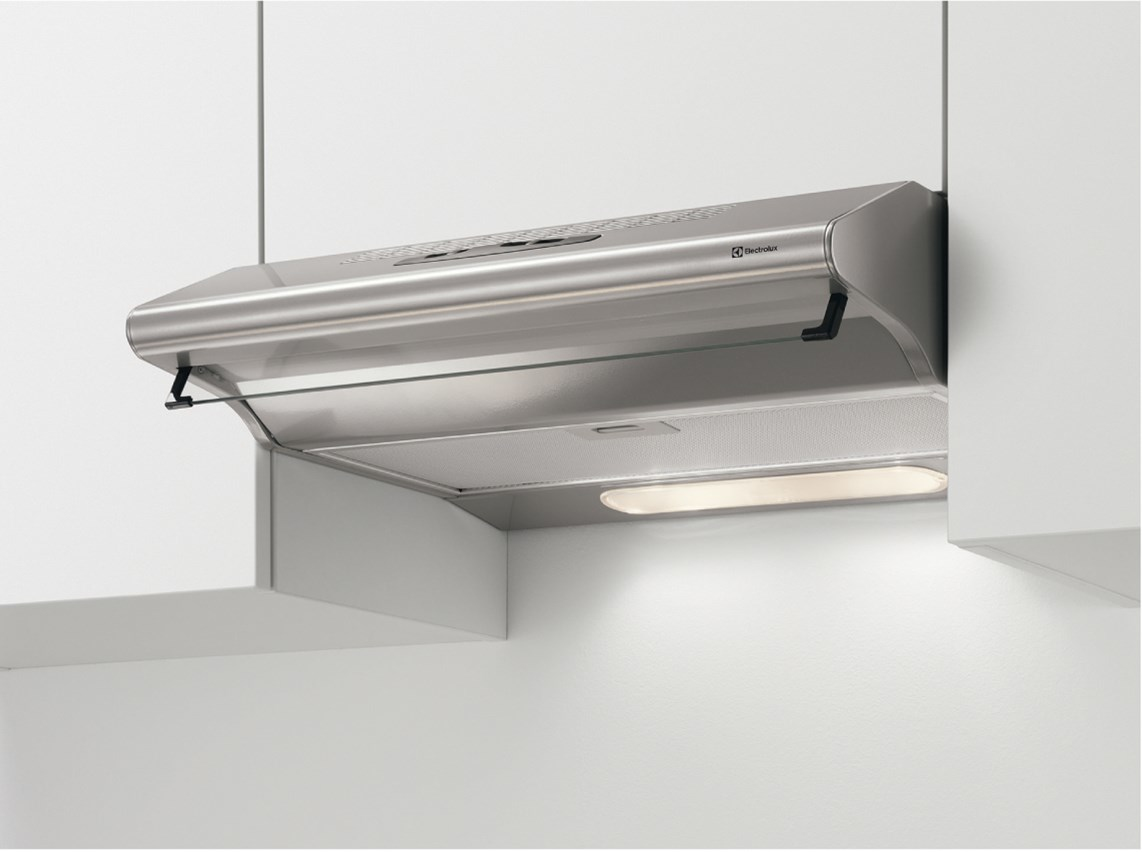 Electrolux EFT60238OS. Maximale Absaugleistung: 304 m³/h, Absaugart: Abluft/Umluft, Flüssige, dynamische Effizienz-Klasse: F. Typ: Built-under cooker hood, Produktfarbe: Silber, Anzahl Lampen: 2 Lampen. Fettfiltertyp: Aluminium / Kohle, Anzahl Filter: 1 Stück(e). Energie-Effizienzklasse: E, Jährlicher Energieverbrauch: 145,7 kWh, Lampenleistung: 56 W. Breite: 598 mm, Höhe: 150 mm, Tiefe: 380 mm