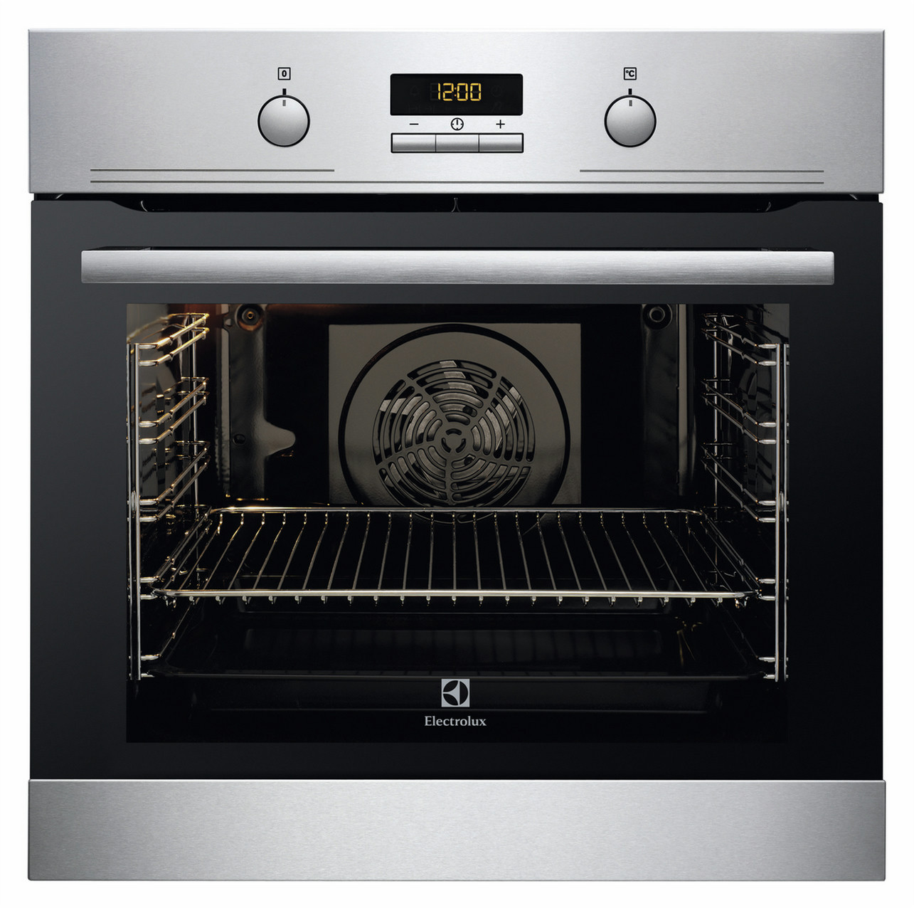 Electrolux EOC3410COX. Ofentyp: Electric oven, Gesamtes Fassungsvermögen Garraum Ofen: 74 l, Innenkapazität des 1. Backofens: 74 l. Produktfarbe: Schwarz, Edelstahl, Kontrolltyp: Knöpfe, Rotation, Integrierte Uhr: Elektronisch. Energie-Effizienzklasse: A-20%, Anschlusswert: 3480 W. Breite: 594 mm, Tiefe: 568 mm, Höhe: 594 mm