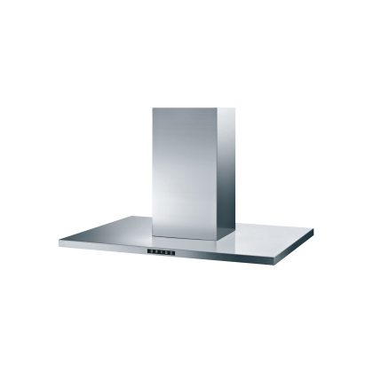 Fort mit Dünsten und unangenehmen Gerüchen aus der Küche! Die stylische Edelstahl Inselhaube kann sowohl als Umluft-, als auch als Ablufthaube