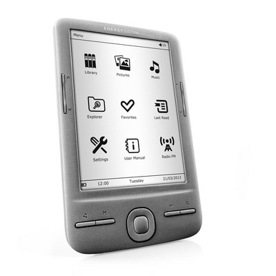 Energy Sistem eReader e4 Mini. Technologie: E Ink, Bildschirmauflösung: 600 x 800 Pixel. Unterstützte Dokumentenformate: ePub, FB2, HTML, MOBI, PDB, PDF, RTF, TXT, Unterstützte Audioformate: AAC, FLAC, MP3, OGG, WAV, WMA, Unterstützte Bildformate: BMP, JPEG XR. Kompatible Speicherkarten: MicroSD (TransFlash), SDHC. Unterstützte Sprachen: CZE, Englische, Spanisch, Französische, Italienisch, RUS. Produktfarbe: Grau