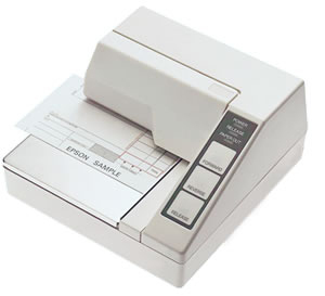 Epson TM-U295. Druckköpfe: 7-polig, Druck richtung: Bidirektion. Bereich der durchgehenden Papierweite: 80 - 182 mm, Bereich der durchgehenden Papierlänge: 69 - 257 mm, Bereich der durchgehenden Papierdicke: 0,09 - 0,35 mm. Standard-Schnittstellen: Parallel, Seriell. Zertifizierung: VCCI, FCC, CE, Sicherheit: UL, C-UL, TÜV. Abmessungen (BxTxH): 180 x 190,5 x 101,5 mm, Energiebedarf: 24V DC, Übertragungstechnik: Verkabelt