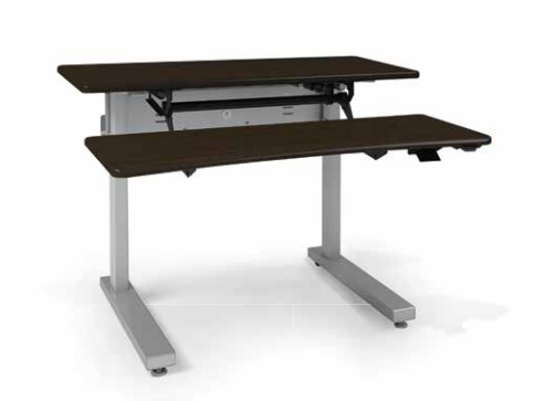 Ergotron Elevate Adjusta 48. Oberflächenmaterial des Tischs: Faserplatte, Rahmenmaterial: Stahl, Oberflächenmaterial Tischplatte: Laminat. Neigungswinkel: 0 - 24°, Lift: 81,3 cm. Breite: 1220 mm, Tiefe: 1054 mm, Höhe: 1190 mm