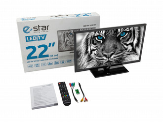 eSTAR D1T1. Bildschirmdiagonale: 55,9 cm (22 Zoll), HD-Typ: Full HD, Bildschirmauflösung: 1920 x 1080 Pixel. Digitales Signalformatsystem: DVB-C,DVB-T, Tunertyp: Analog & Digital. RMS-Leistung: 10 W. Produktfarbe: Schwarz. Stromverbrauch (typisch): 33 W, Energie-Effizienzklasse: A, Stromverbrauch (aus): 0,1 W