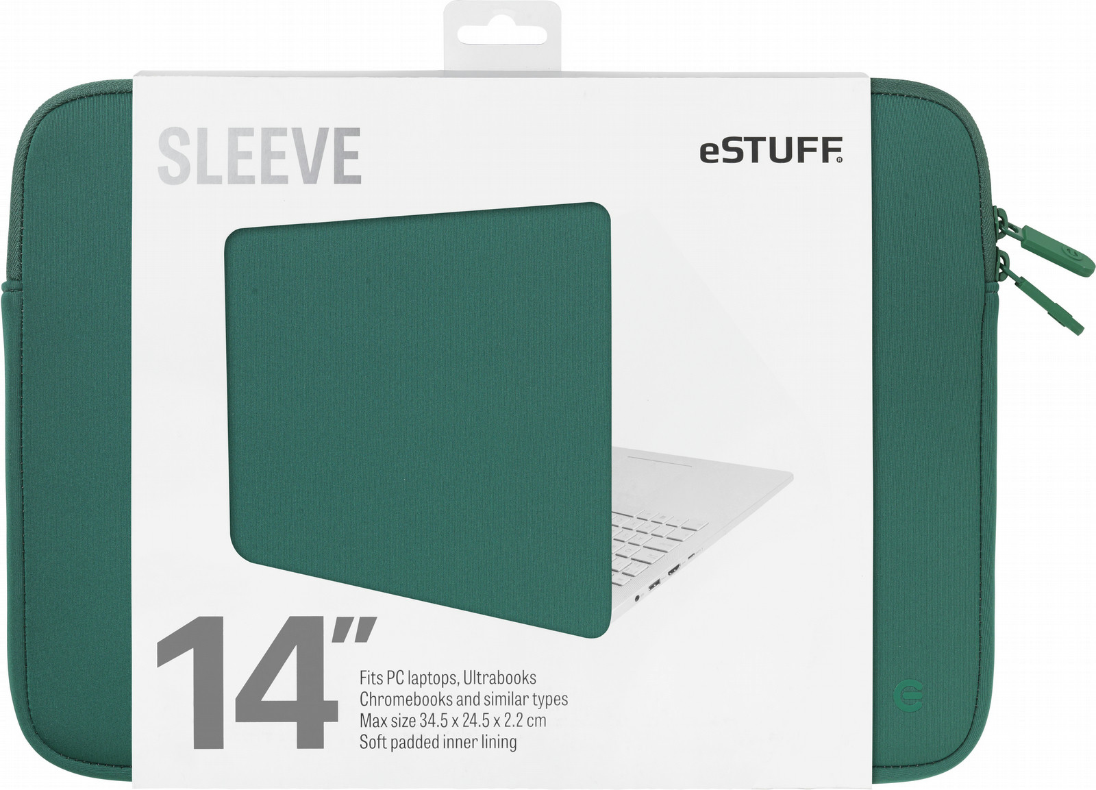 eSTUFF ES82252-OASIS. Maximaler Bildschirmdurchmesser: 35,6 cm (14 Zoll), Art der Tasche: Sleeve case, Produktfarbe: Türkis. Abmessungen der Notebookfächer (BxTxH): 345 x 22 x 245 mm