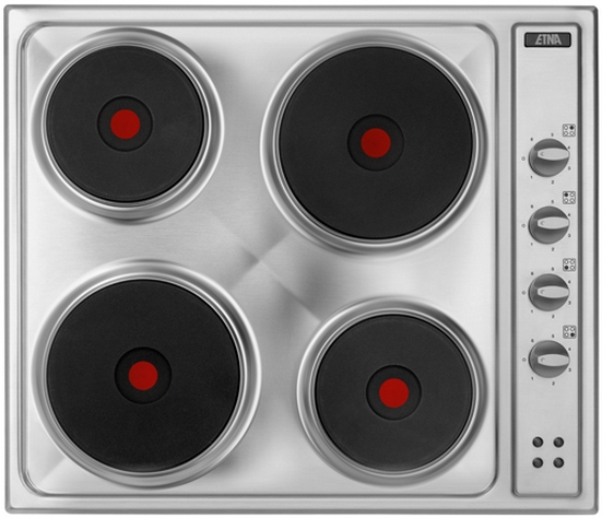 ETNA TEK161RVS. Bauform: Eingebaut, Kochfeldtyp: Sealed plate hob, Oberfläche Typ: Edelstahl. Kontrolltyp: Rotation. Leistung: 7000 W. Breite: 580 mm, Tiefe: 500 mm, Höhe: 30 mm