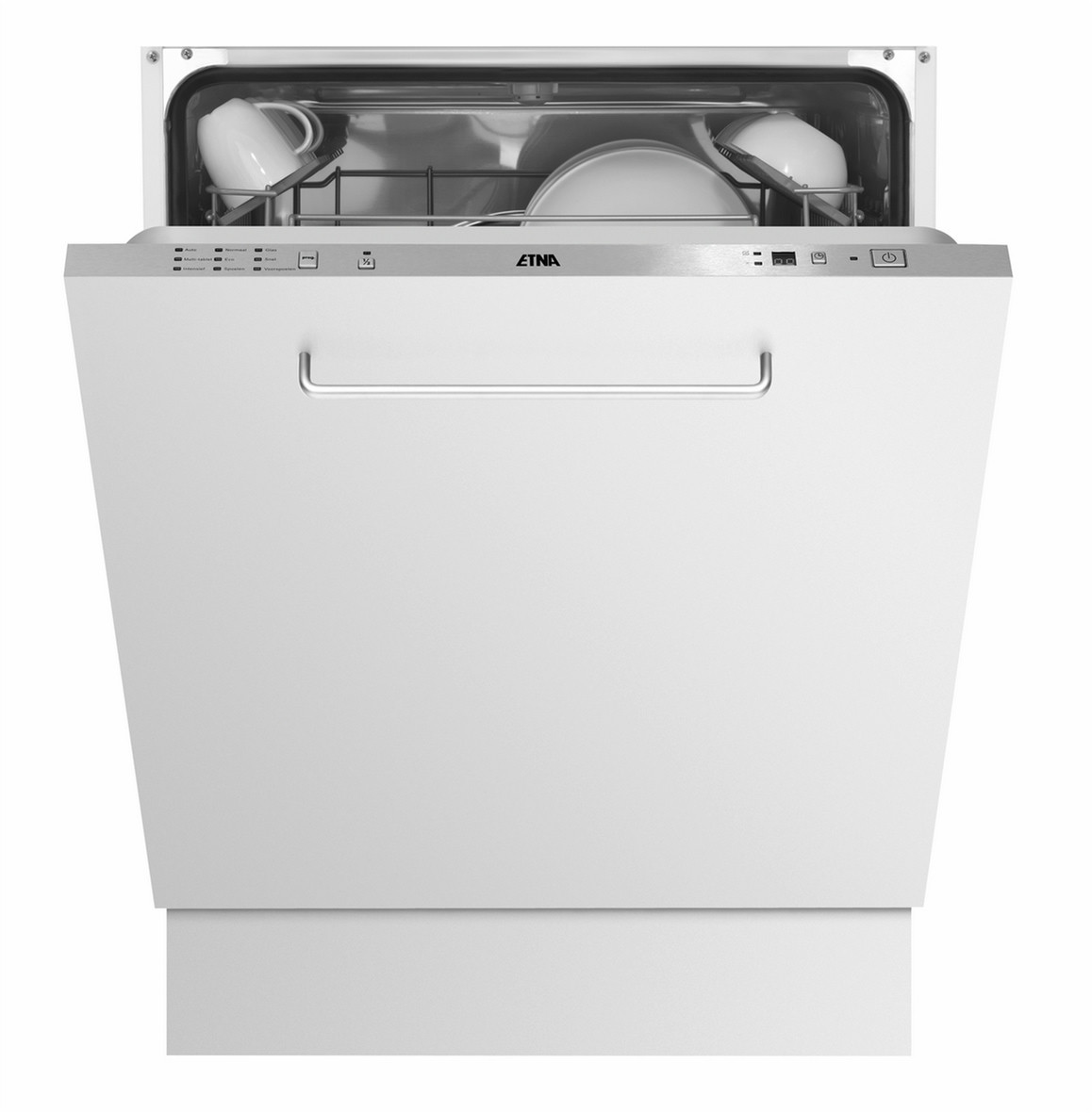 ETNA TFI8018RVS. Typ: Vollständig integrierbar, Bedienfeld Farbe: Edelstahl, Display-Typ: LED. Geschirrspülprogramme: Glas/Filigran, Intensiv, Normal, Vorgewaschen, Schnell. Energie-Effizienzklasse: A+
