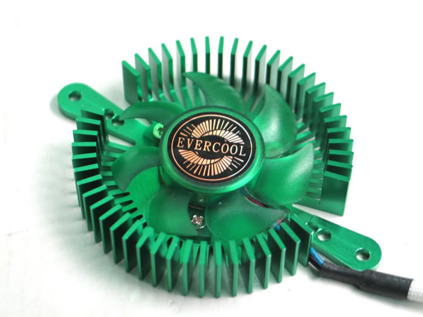 EverCool mini UFO. Geeignet für: Videokarte, Typ: Kühler, Kompatibilität: Nvidia GeForce 4 Ti 4200/ 4800, FX5900/ 6200/ 6600, 7300GS/ 7300GT/ 7600GS, 8500GT.. Produktfarbe: Grün, Material: Aluminium, Ablichtung: LED