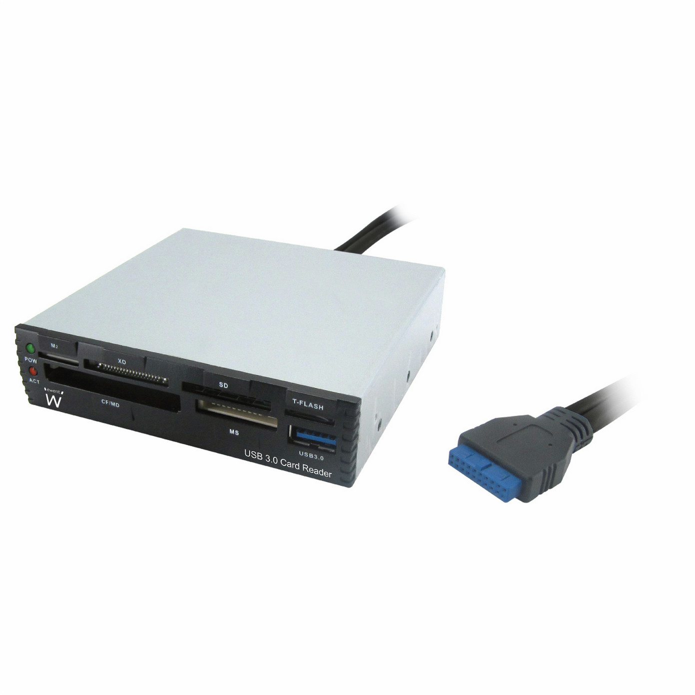 Der Ewent USB 3.0-Kartenleser unterstützt die gebräuchlichsten Speicherkarten; SD, SDHC und die neueste Generation von SDXC-Karten. Zudem gibt es Steckplätze für M2, XD, CF/MS und MS.