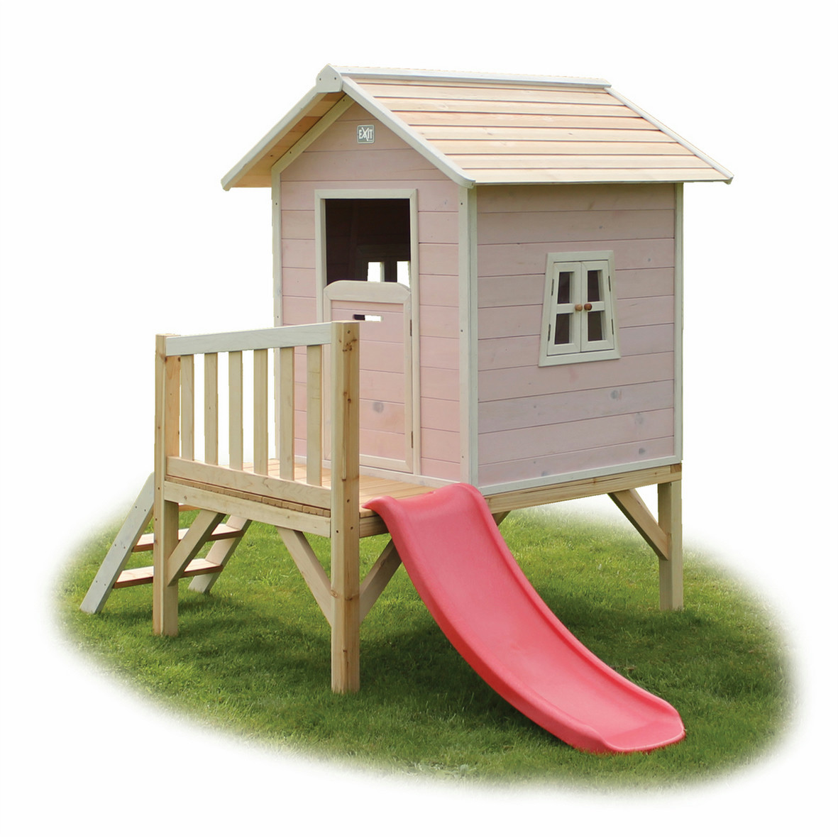 Jedes Kind findet es toll, sein eigenes "kleines Häuschen" zu haben! Ein Spielgerät zum spielen, ganz für dich allein, zusammen mit deinem Bruder, deiner Schwester, deinem Freund und deiner Freundin. Das EXIT Beach 300 ist aber auch ein besonders schönes Häuschen auf Pfählen, mit einer richtigen Veranda und über die Rutschbahn rutscht du in Nu nach unten! Mit seinem natürlichen Aussehen ist das Häuschen qua Design wirklich eine prächtige Bereicherung im Garten von Papa und Mama.