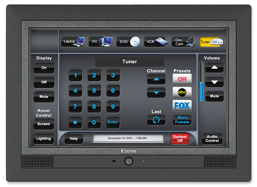 Extron TLP Pro 1020M. Internes RAM: 0,5 GB, Speicherkapazität: 0,5 GB. Schnittstelle: Verkabelt, Übertragungstechnik: Ethernet, Ethernet Schnittstellen Typ: Schnelles Ethernet. Produktfarbe: Schwarz. Gewicht: 1,03 kg, Paketgewicht: 2 kg