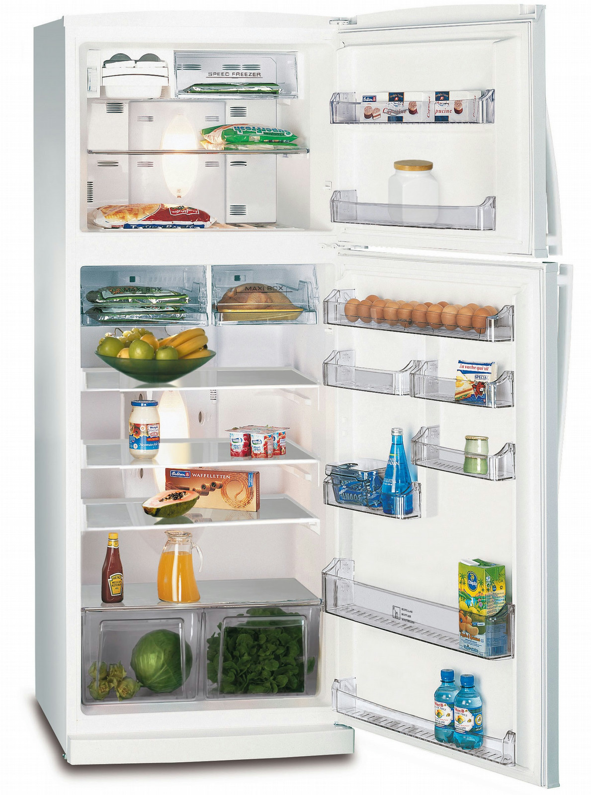 Fagor FD-725NF. Bauform: Freistehend, Produktfarbe: Weiß, Türanschlag: Rechts. Brutto Gesamtkapazität: 435 l, Klimakategorie: T, Geräuschpegel: 43 dB. Kühlschrank - Bruttokapazität: 327 l. Gefrierfach - Bruttokapazität: 108 l, Gefriervermögen: 5 kg/24h, Lagerzeit bei Störung: 7 h. Energie-Effizienzklasse: A+, Anschlusswert: 206 W, Jährlicher Energieverbrauch: 372 kWh