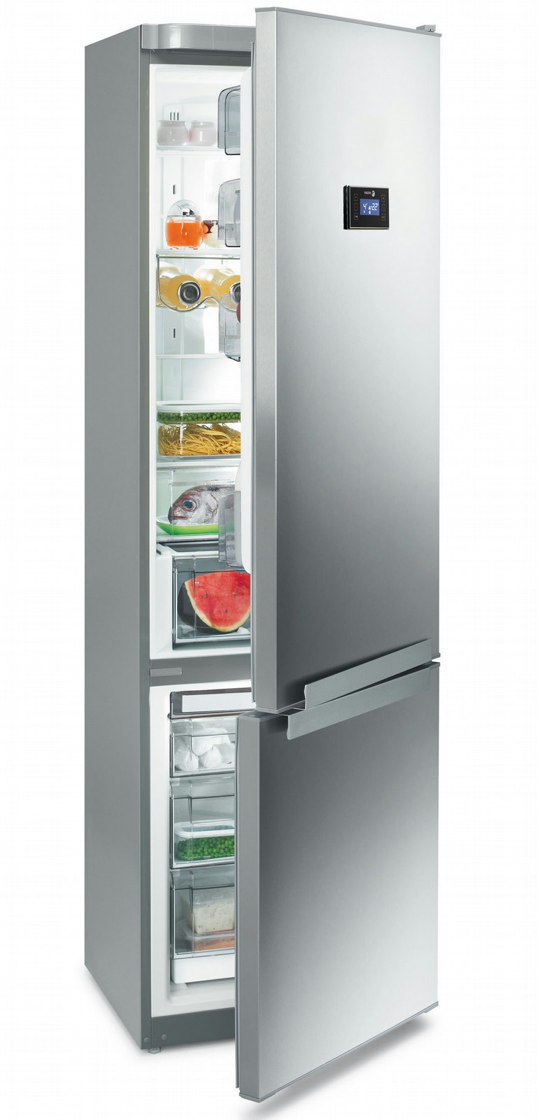 Fagor FFJ6845X. Bauform: Freistehend, Produktfarbe: Edelstahl, Türanschlag: Rechts. Brutto Gesamtkapazität: 362 l, Geräuschpegel: 42 dB. Kühlschrank - Bruttokapazität: 261 l. Gefrierfach - Bruttokapazität: 101 l, Gefriervermögen: 12 kg/24h, Lagerzeit bei Störung: 13 h. Energie-Effizienzklasse: A+, Anschlusswert: 88 W, Jährlicher Energieverbrauch: 288 kWh