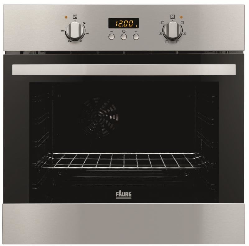 Faure FOA25001XK. Ofentyp: Electric oven, Gesamtes Fassungsvermögen Garraum Ofen: 60 l, Insgesamt Backofen Leistung: 2725 W. Produktfarbe: Edelstahl, Kontrolltyp: Knöpfe, Rotation, Kabellänge: 1,1 m. Timer-Typ: Digital. Energie-Effizienzklasse: A, Energieverbrauch (konventionell): 0,79 kWh, Energieverbrauch (erzwungene Konvektion): 0,78 kWh. Breite: 594 mm, Tiefe: 560 mm, Höhe: 590 mm