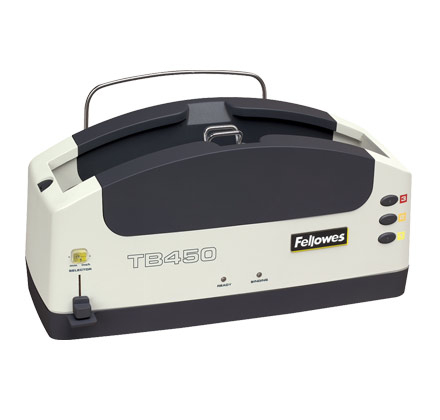 Fellowes 56211-73 TB 450. Bindefähigkeit: 700 Blätter, Aufwärmzeit: 180 s. Abmessungen (BxTxH): 432 x 210 x 248 mm, Gewicht: 2,42 kg