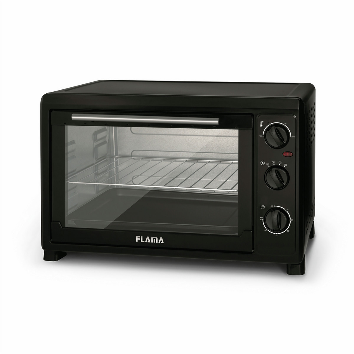 Flama 1545FL. Ofengröße: Medium, Gesamtes Fassungsvermögen Garraum Ofen: 45 l, Insgesamt Backofen Leistung: 2000 W. Bauform: Freistehend, Produktfarbe: Schwarz, Kontrolltyp: Rotation. Timer-Typ: Mechanisch, 99-Minuten-Timer: 60 min