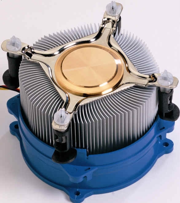 Foxconn NBT-CMI7759B-C - Cooler for S775. Unterstützte Prozessorsteckplätze: LGA 775 (Socket T), Geräuschpegel (hohe Geschwindigkeit): 24 dB, Thermischer Widerstand: SC 7762. Produktfarbe: Blau, Weiß. Gewicht: 630 g. Abmessungen (BxTxH): 92 x 92 x 25 mm