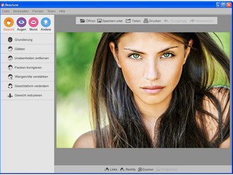 Bei einfachster Bedienung in nur vier Schritten bietet der Porträt Optimierer vollständige Kosmetik und Makeup-Paletten sowie sanfte biometrische Korrekturmaßnahmen, die jede Porträtaufnahme im besten Licht erstrahlen lassen. Diese Software ist ganz für die Porträtbearbeitung spezialisiert - schnell und einfach jedes Gesicht oder Gruppenbild optimieren!