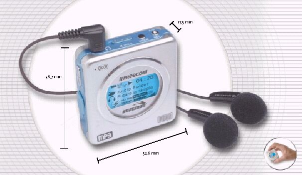 Freecom Beatman Flash -128 MP3 WMA Player+Radio. Gesamtspeicherkapazität: 0,128 GB. Sprachaufnahmezeit: 34 h. Kontinuierliche Audiowiedergabezeit: 9 h. Mindestsystemvoraussetzungen: PC, Intel Pentium 133MHz or higher, 32MB RAM, 40MB free hard drive space, CD-ROM drive, Windows98SE . Gewicht: 44 g