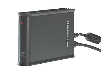 Freecom MediaPlayer 2.5" 100GB. Produktfarbe: Schwarz. Festplattenkapazität: 100 GB. Videokompressionsformate: AVI,DAT,DivX,MPEG,MPG,VOB,XviD, Unterstützte Audioformate: MP3,WAV,WMA. Schnittstelle: USB 2.0. LED-Anzeigen: Festplatte, Leistung