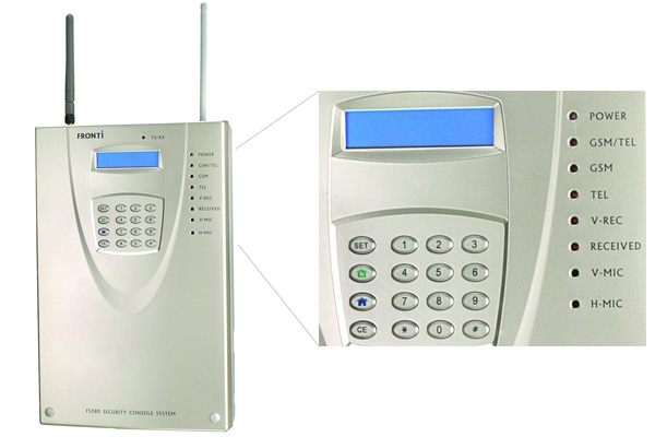 Fronti FS280 Security Console. Abmessungen (BxTxH): 180 x 70 x 290 mm, Gewicht: 1,15 kg. Maximaler Betriebsabstand: 200 m. Bereitschaftsstrom: 50 mA, Energieverbrauch: 450 mA. Verpackungsabmessungen (BxTxH): 320 x 230 x 75 mm, Paketgewicht: 1,2 kg