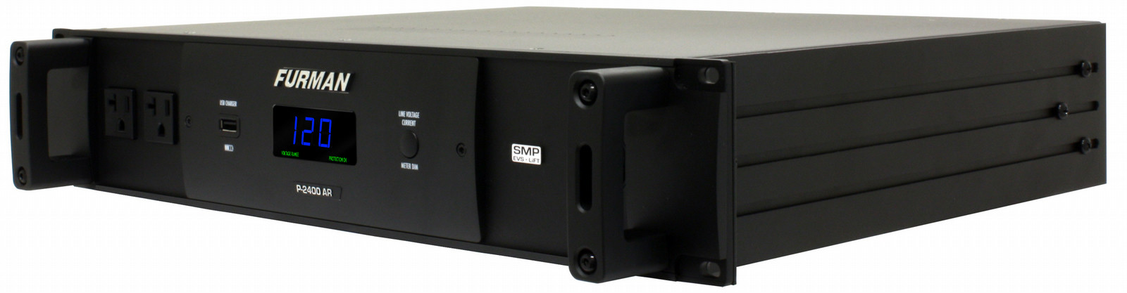 Furman P-2400 AR. Nominale Eingang Spannung: 90-139, Maximaler Eingang Strom pro Phase: 20 A. Ausgangsspannung: 120 V. AC-Steckertypen: NEMA 5–20R, Stecker: NEMA 5–20. Gewicht: 18 kg, Breite: 483 mm, Tiefe: 305 mm