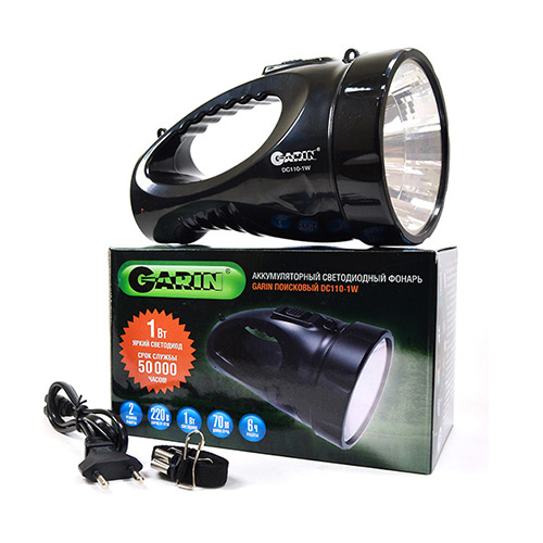 GARIN DC110-1W, LUX. Taschenlampen-Typ: Hand-Blinklicht, Produktfarbe: Schwarz, Gehäusematerial: Kunststoff. Lampentyp: LED, Blinkmodi: Hoch, Medium. Batterietechnologie: Plombierte Bleisäure (VRLA), Aufladequelle: AC. Verpackungsart: Box. Mitgelieferte Kabel: AC
