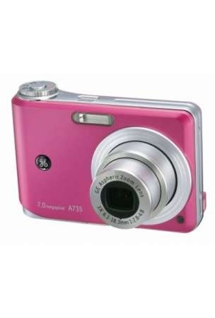 GE A735 Pink. Kamerabildpunkte: 7 MP, Größe des Bildsensors: 1/2.5 Zoll, Sensor-Typ: CCD. Optischer Zoom: 3x, Digitaler Zoom: 4,5x, Brennweitenbereich: 6,1 - 18,3 mm. Fokuseinstellung: Auto, Autofokus (AF)-Modi: multi point auto focus, Einzelbild-Autofokus, spot auto focus, Normaler Fokusbereich: 0.60 - ∞. ISO-Empfindlichkeit: 100, 200, 400, 800, 1600, Auto, Belichtungstyp: Auto, Belichtungsmessung: Mittenbetonte, Spot. Blitz-Modi: Auto, Flash aus, Rote-Augen-Reduzierung, langsame Synchronisation, Blitzreichweite (Weitwinkel): 0,3 - 4,6 m, Blitzreichweite (Tele): 0,3 - 2,7 m