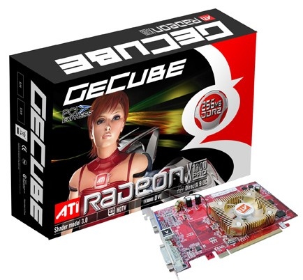 GeCube Radeon X1300. Maximale Auflösung: 2048 x 1536 Pixel. Grafikkartenspeichertyp: GDDR2, Breite der Speicherschnittstelle: 128 Bit. Schnittstelle: PCI Express x16. Unterstützte Videoformate: DivX,H.264,VC-1,WMV9. Kühlung: Aktiv, Formfaktor: ATX, Zertifizierung: ROHS