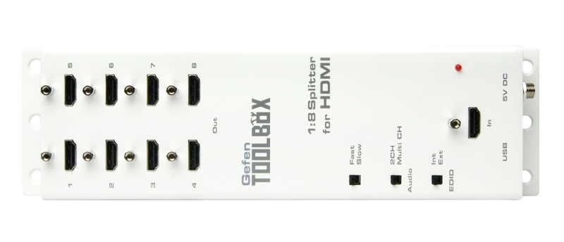 Gefen ToolBox 1:8 Splitter for HDMI with FST and 3DTV. Video Porttyp: HDMI. Produktfarbe: Weiß. Abmessungen (BxTxH): 76,2 x 25,4 x 261,62 mm. Mitgelieferte Kabel: HDMI