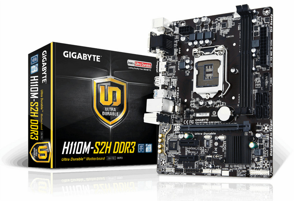 Gigabyte GA-H110M-S2H DDR3. Unterstützte Arbeitsspeicher: DDR3-SDRAM,DDR3L-SDRAM, Arbeitsspeicher Typ: DIMM, Unterstützte Arbeitsspeichergeschwindigkeit: 1333,1600 MHz. Prozessorfamilie: Intel, Kompatible Prozessoren: Celeron,Core i3,Core i5,Pentium, Prozessorsockel: LGA 1151 (Socket H4). Unterstützte Speicherlaufwerk-Schnittstellen: Serial ATA III. Ethernet Schnittstellen Typ: Gigabit Ethernet. Komponente für: PC, Motherboard Chipsatz Familie: Intel, Motherboard Chipsatz: Intel H110