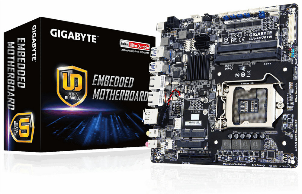 Gigabyte GA-H110TN. Unterstützte Arbeitsspeicher: DDR4-SDRAM, Arbeitsspeicher Typ: SO-DIMM, Unterstützte Arbeitsspeichergeschwindigkeit: 2133 MHz. Prozessorfamilie: Intel, Kompatible Prozessoren: Celeron,Core i3,Core i5,Core i7,Pentium, Prozessorsockel: LGA 1151 (Socket H4). Unterstützte Speicherlaufwerk-Schnittstellen: Serial ATA III. Ethernet Schnittstellen Typ: Gigabit Ethernet. Komponente für: PC, Motherboard Chipsatz Familie: Intel, Motherboard Chipsatz: Intel H110