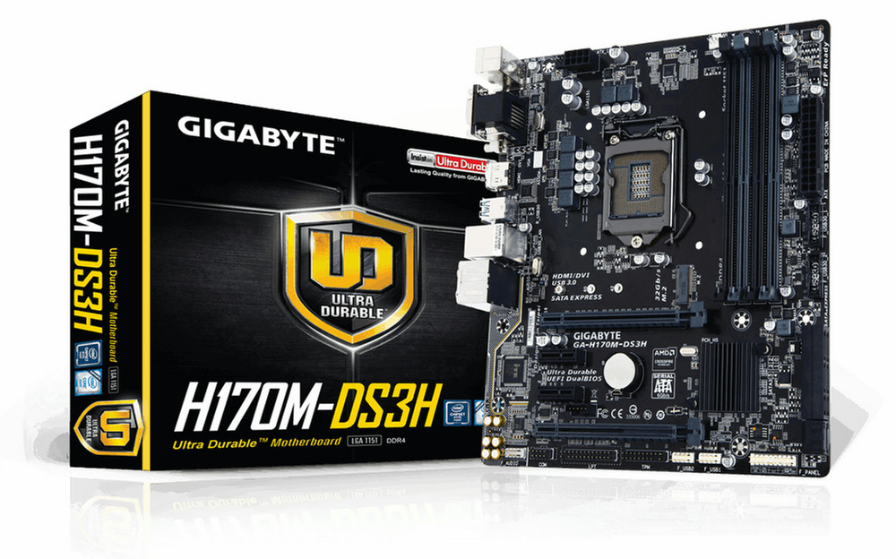 Gigabyte GA-H170M-DS3H. Unterstützte Arbeitsspeicher: DDR4-SDRAM, Arbeitsspeicher Typ: DIMM, Unterstützte Arbeitsspeichergeschwindigkeit: 2133 MHz. Prozessorfamilie: Intel, Kompatible Prozessoren: Core i3,Core i5,Core i7,Pentium, Prozessorsockel: LGA 1151 (Socket H4). Unterstützte Speicherlaufwerk-Schnittstellen: M.2, Serial ATA III. Ethernet Schnittstellen Typ: Gigabit Ethernet. Komponente für: PC, Motherboard Chipsatz Familie: Intel, Motherboard Chipsatz: Intel H170