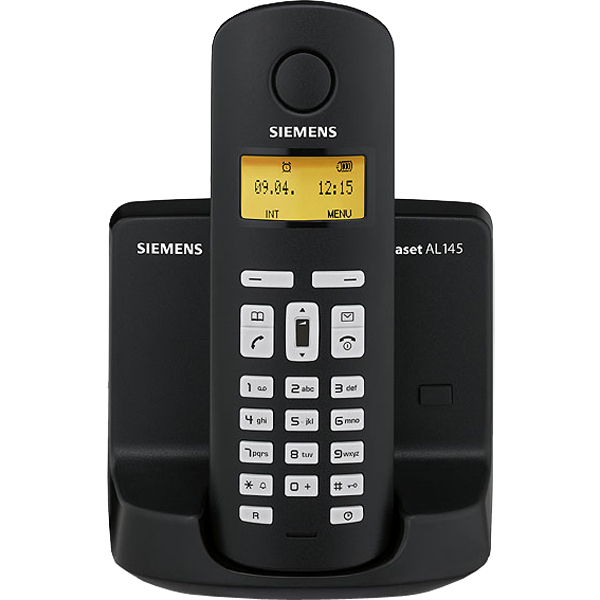 Gigaset AL145. Typ: DECT-Telefon, Aufnahmezeit: 14 min, Maximum Innenabstand: 50 m. Produktfarbe: Schwarz. Telefonbuch Kapazität: 40 Eintragungen. Textzeilen: 3 Zeilen, Farbe der Hintergrundbeleuchtung: Bernstein, Anzahl der Farben des Displays: Monochrom. Gesprächszeit: 13 h, Bereitschaftszeit: 200 h, Batterietechnologie: Nickel-Metallhydrid (NiMH)