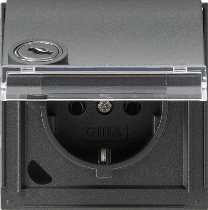 SCHUKO-Steckdose 16 A 250 V~ mit Klappdeckel, Schloss und Beschriftungsfeld mit gleichen Schließungen