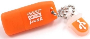 Goodram Fresh Orange 8GB. USB-Version: USB 2.0, USB-Anschluss: Typ A, Unterstützte Windows-Betriebssysteme: Windows 2000, Windows 7 Home Premium, Windows Vista Home Premium, Windows XP Home. Formfaktor: Kappe, Produktfarbe: Orange, Schutzfunktion: Staubresistent, Kratzresistent, Schockresistent. Verpackungsart: Sichtverpackung. Verpackungsabmessungen (BxTxH): 125 x 130 x 0 mm