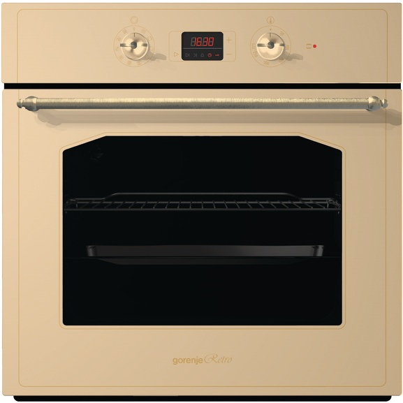 Gorenje BO7349RW. Ofentyp: Electric oven, Gesamtes Fassungsvermögen Garraum Ofen: 65 l, Innenkapazität des 1. Backofens: 65 l. Produktfarbe: Beige, Schwarz, Kontrolltyp: Rotation, Sensor, Kontrollposition: Vorderseite. Timer-Typ: Digital. Stromverbrauch (typisch): 3300 W, AC Eingangsspannung: 230 V. Breite: 597 mm, Tiefe: 565 mm, Höhe: 595 mm