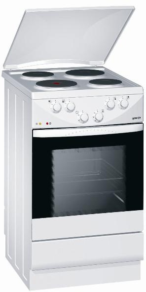 Gorenje E275W. Produkttyp: Freistehend, Produktfarbe: Weiß, Kontrolltyp: Rotation. Kochfeldtyp: Sealed plate hob, Oberfläche Typ: Emaillenstahl, Brenner/Kochzone 1 Typ: Klein. Stromquelle Ofen: Elektro, Bruttorauminhalt Ofen: 57 l, Gesamtes Fassungsvermögen Garraum Ofen: 57 l. Energie-Effizienzklasse: B, Energieverbrauch (konventionell): 0,93 kWh, AC Eingangsspannung: 230 V. Breite: 500 mm, Tiefe: 600 mm, Höhe: 850 mm